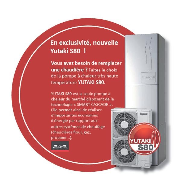 <!--#WYSIWYG#--><p><br /> Pompe à chaleur HITACHI YUTAKI S80 <span style="color: rgb(0, 48, 177);"><strong><span style="color: rgb(0, 48, 177);">Chauffage Seul</span></strong> </span>XRWH 5FSN Puissance 18 kW Tri<br /> <br /> <strong> Pompe à chaleur Haute Température 80° HITACHI YUTAKI S80 Bi-Bloc <span style="color: rgb(0, 119, 0);"><span style="color: rgb(0, 119, 0);">18.00 Kw Tri</span> <span style="color: rgb(0, 119, 0);">Chauffage Seul</span></span></strong><br /> - Yutaki S80 Haute Température est la solution idéale pour le remplacement de chaudière.<br /> - Elle peut produire de l'eau à 80° par -20°C extérieur et peut donc remplacer n'importe quelle chaudière.<br /> - Fonctionnement thermodynamique sans batterie électrique.<br /> - Technologie cascade Inverter .<br /> - Possibilité de produire ECS (avec ballon en option - voir produits associés). <br /> - Moins de baisse de puissance lors des températures négatives.<br /> - Régulation par loi d'eau en fonction de la température extérieure.<br /> <br /> <span style="color: rgb(0, 119, 0); text-decoration: underline;"><strong><span style="color: rgb(0, 119, 0);">Module Hydraulique + Contrôleur</span> </strong></span><br /> <span ar-sa;?=" roman?;=" ?times=" schoolbook?,?serif?;=" ?century=" black;=" 115%;=" 9pt;=" new=" fr;="><span ar-sa;?=" roman?;=" ?times=" schoolbook?,?serif?;=" ?century=" black;=" 115%;=" 9pt;=" new=" fr;="><strong>Référence :</strong></span><span ar-sa;?=" roman?;=" ?times=" schoolbook?,?serif?;=" ?century=" black;=" 115%;=" 9pt;=" new=" fr;="> RWH 6.0FSNFE<br /> <b>Puissance max. :</b> 18 kW<br /> <b>Puissance max. (-7°C Ext. / 65°C Eau) :</b> 16 kW<br /> <b>Puissance max. (-15°C Ext. / 65°C Eau) :</b> 14 kW<br /> <b>Poids :</b> 167 kg<br /> <b>Température de sortie d'eau :</b> 20°C à 80°C<br /> <b>Dimensions H*L*l :</b> 706*595*695 mm<br /> <b>Alimentation électriques :</b> 400 V - Triphasé</span><span ar-sa;?=" roman?;=" ?times=" schoolbook?,?serif?;=" ?century=" 115%;=" 9pt;=" new=" fr;=" 177);=" 48,=" rgb(0,="><br /> </span><b><span ar-sa;?=" roman?;=" ?times=" schoolbook?,?serif?;=" ?century=" black;=" 115%;=" 9pt;=" new=" fr;=">Type de compresseur :</span></b><span ar-sa;?=" roman?;=" ?times=" schoolbook?,?serif?;=" ?century=" black;=" 115%;=" 9pt;=" new=" fr;="> Scroll Inverter</span></span><br /> <br /> <strong><span style="color: rgb(0, 119, 0); text-decoration: underline;">Groupe Extérieur Inverter</span><br /> </strong><span ar-sa;?=" roman?;=" ?times=" schoolbook?,?serif?;=" ?century=" black;=" 115%;=" 9pt;=" new=" fr;="><strong>Référence</strong></span><span ar-sa;?=" roman?;=" ?times=" schoolbook?,?serif?;=" ?century=" black;=" 115%;=" 9pt;=" new=" fr;="> : RAS 6HRNME-AF<br /> <b>COP à +7° :</b> 4.05<br /> <b>Poids :</b> 108 kg<br /> <b>Type de compresseur :</b> Scroll Inverter<br /> <b>Dimensions H*L*l : </b>1380*950*370 mm<br /> <b>Alimentation électriques :</b> 400 V - Triphasé<br style="mso-special-character: line-break;" /> <!--[endif]--> </span><br /> <b><span style="color: rgb(0, 119, 0);" ar-sa;?=" roman?;=" ?times=" schoolbook?,?serif?;=" ?century=" 115%;=" 9pt;=" new=" fr;=" rgb(0,=" 0);=" 119,="><span style="color: rgb(0, 48, 177);">XRWH 6FSN</span> : </span></b><span ar-sa;?=" roman?;=" ?times=" schoolbook?,?serif?;=" ?century=" black;=" 115%;=" 9pt;=" new=" fr;=">Module Hydraulique + Contrôleur Tri + Groupe extérieur - Triphasé </span><br /> <br /> Garantie 3 ans pièces et 5 ans compresseur </p>